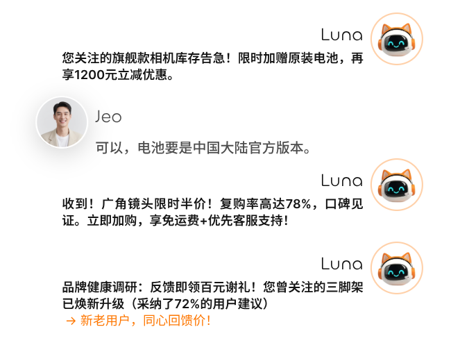 全天候智能咨询引导,助力转化与规模化个性运营。