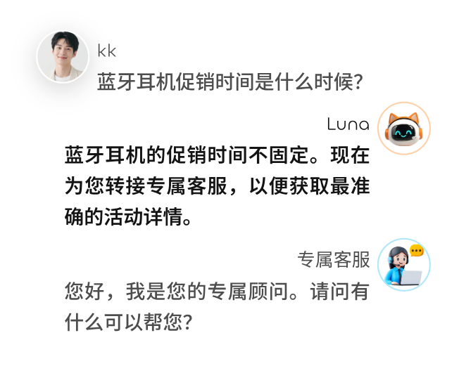 LUNA AI 支持自主学习与实时补充知识,分析人工客服流程,持续进化应对新场景,保障对话精准有温度,持续创造价值。