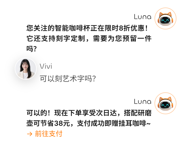 全天候智能咨询引导,助力转化与规模化个性运营。