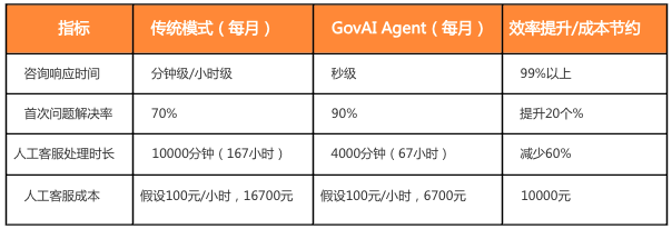 GovAI Agent的价值不仅仅体现在其智能化的功能上,更在于其能够为企政平台带来可量化的效率提升与成本节约。